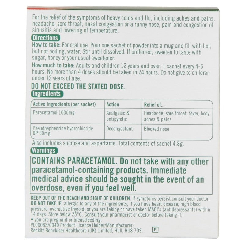 Active Ingredients (per sachet): Paracetamol 1000mg, Pseudoephedrine Hydrochloride BP 60mg