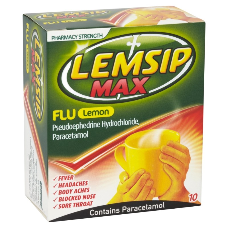 Lemsip Max Flu Lemon Sachets are for the relief of the symptoms of heavy colds and flu, including aches and pains, headache, sore throat, nasal congestion or a runny nose, pain and congestion of sinusitis and lowering of temperature.