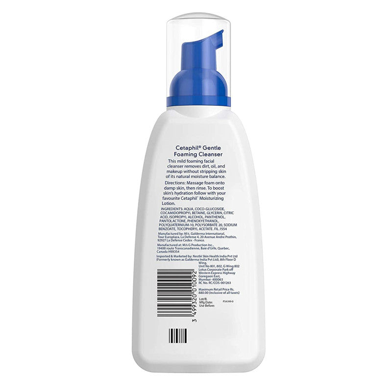 Cetaphil Foaming Cleanser 236ml is a mild foaming cleanser for dry, sensitive skin. It cleanses while maintaining the skin's natural protective oils and natural pH. It is fragrance-free and non-comedogenic, making it an excellent choice for facial cleansing, as well as hands and body.