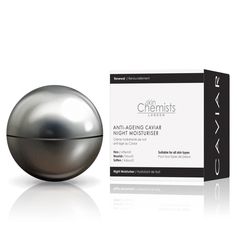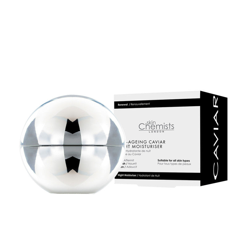 Skin Chemists Anti-Ageing Caviar Night Moisturiser is perfect for all skin types. This easily absorbed night moisturiser helps to mattify, smooth, and brighten your complexion. Skin is left nourished and deeply hydrated, and uneven skin tone is balanced.